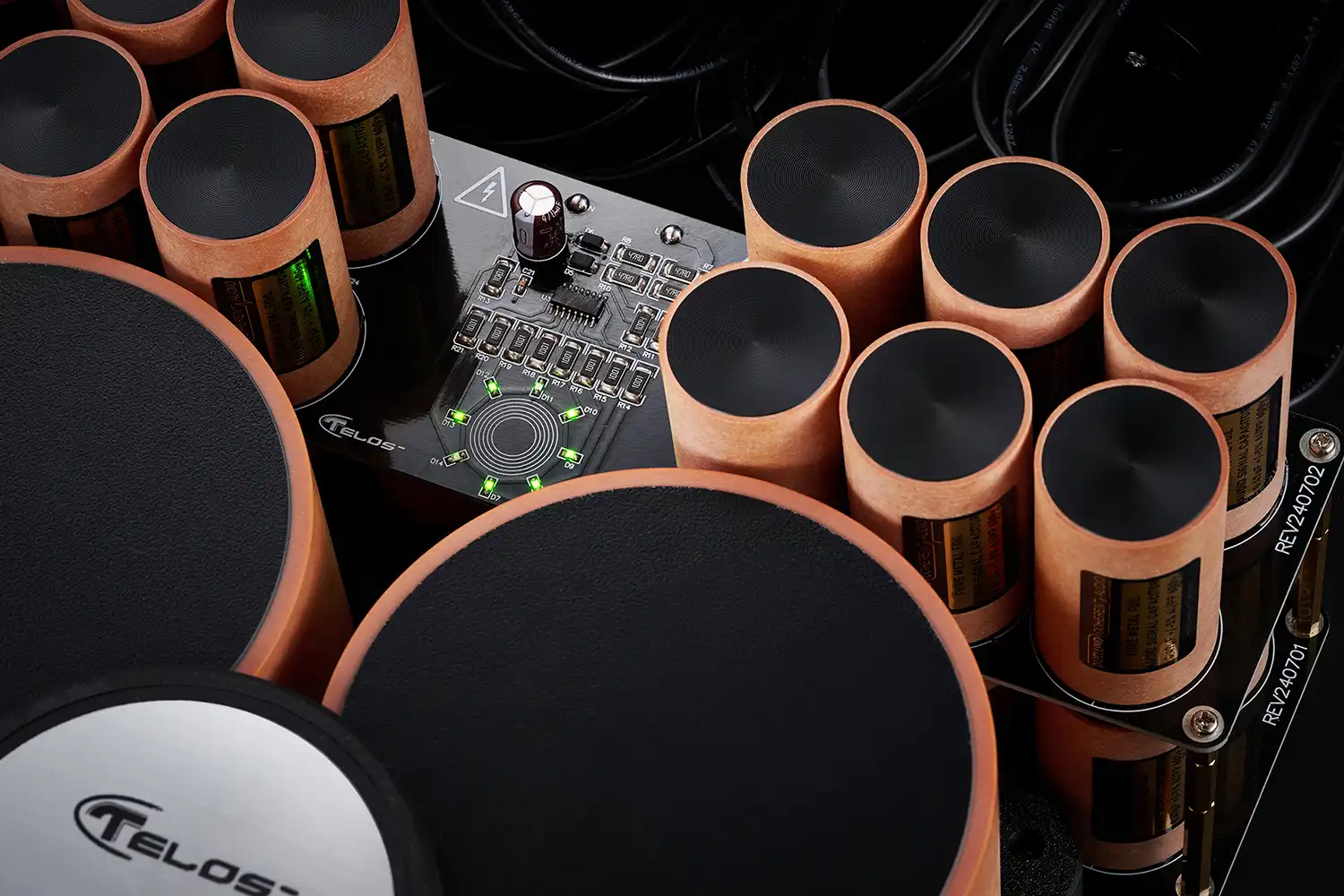 Internal module sound tuning is conducted to enhance audio detail and clarity by incorporating the most expensive top-tier capacitors available, German Mundorf and Danish Duelund capacitors, coupled with exclusive 3D-printed damping mechanisms and Oyaide conductors boasting a 102% SSC superconductor rating.
